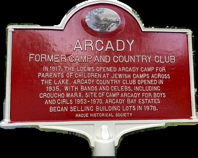 In 1935, Arcady Camp was renovated to become the Arcady Country Club. It was a huge success with a national reputation. Chefs were brought in from New York City to make kosher meals. The Marx Brothers performed. And, of course, it was a golf club. It 1952, the Brandts bought it and changed it back to a camp, but this time for children. The first season was in 1953. It was a co-ed camp, and it was very beloved and successful. Alas, there was a tragic accident involving several counselors in 1967. The camp never really recovered. It closed in 1970. Bob Katzman and Errol Blank bought it and created the Arcady Bay estates development.