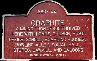 With the effort to push for a post office, the name of Graphite put the town on the map. The mine superintendent, George Hooper, recommended the name when "Hague Mines"  and "Dixon " were rejected. George Hooper, son of William Hopper, supervisor of the American Graphite Company mill in Ticonderoga, ran the works at Hague using machinery designed and patent it for that purpose by his father.