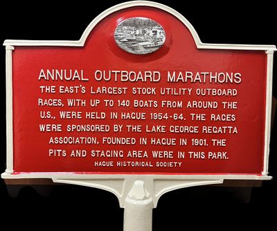 From 1954-1964, a small group of local men and women dreamed big and brought their dream to fruition. With little other than unbridled enthusiasm and an unstoppable can-do attitude, they relaunched the Lake George Regatta Association (LGRA), which was founded in Hague in 1901 but had ceased operating in 1929. They convinced the American Power Boat Association to sanction the Hague races, which earned the town a slot on APBA’s national circuit. For one August weekend every year, stock utility outboard race boats and their drivers took over the town. At its peak, the Northern Lake George outboard marathon attracted nearly 150 racers and their families.